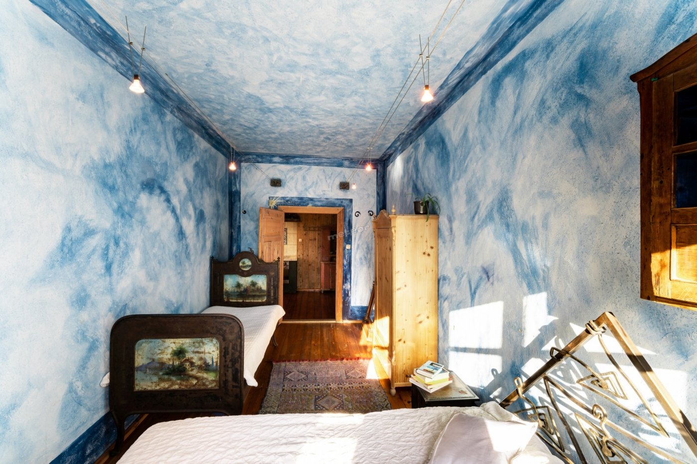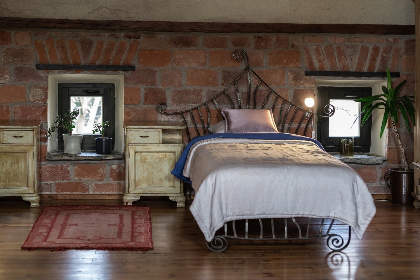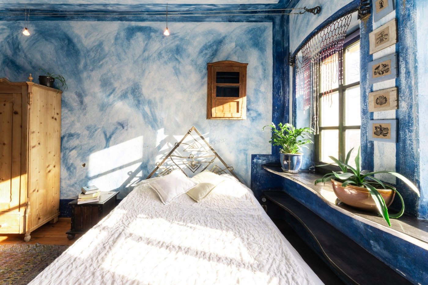 Pokoje wyposażone są w dwuosobowe łóżka lub materace, szafy lub komody na ubrania, krzesła, fotele lub kanapy. Łazienki ogólnodostępne.