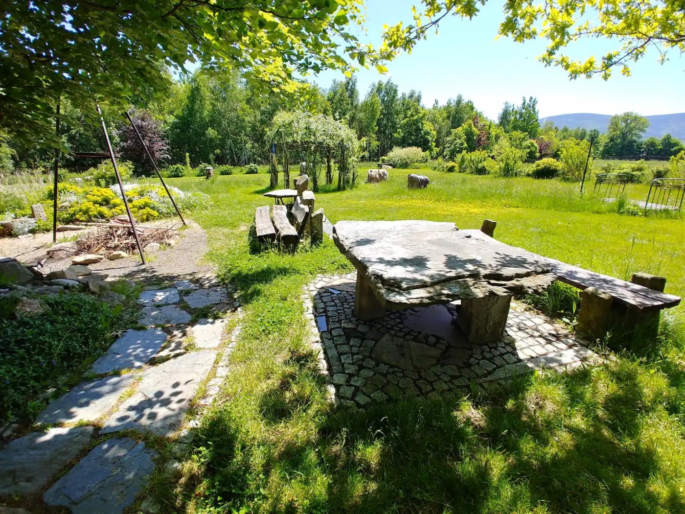 Apartament - mieszkanie z wielkim tarasem i pięknym widokiem na Góry Izerskie dla 4-5 osób. Apartament składa się z kuchni, części jadalnej, miejsca do wypoczynku i sypialni. Na parterze znajduje się druga dwuosobowa sypialnia, kuchnia jest w pełni wyposażona. W ogrodzie znajdą Państwo miejsce na ognisko i grill (jest też przygotowane suche drewno na ognisko), duża altana, plac zabaw. W domu jest internet bezprzewodowy.