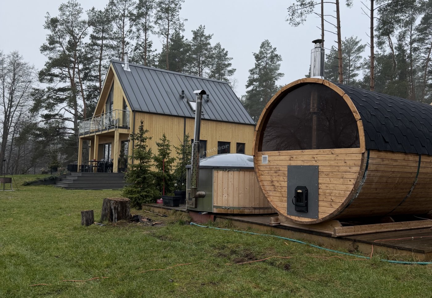 Полностью оборудованные, новые комфортабельные дома для семьи и друзей, близость к первоклассному озеру с песчаным берегом, тишина, лес, природа.