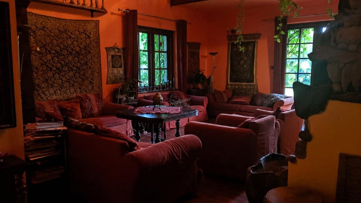 Коттедж оформлен в старинном стиле, отапливается дровяной печью и электрическим обогревателем.