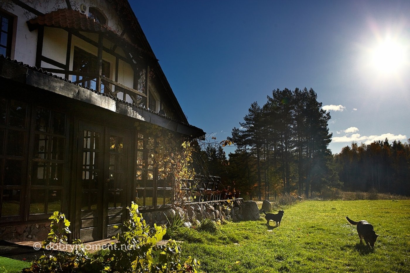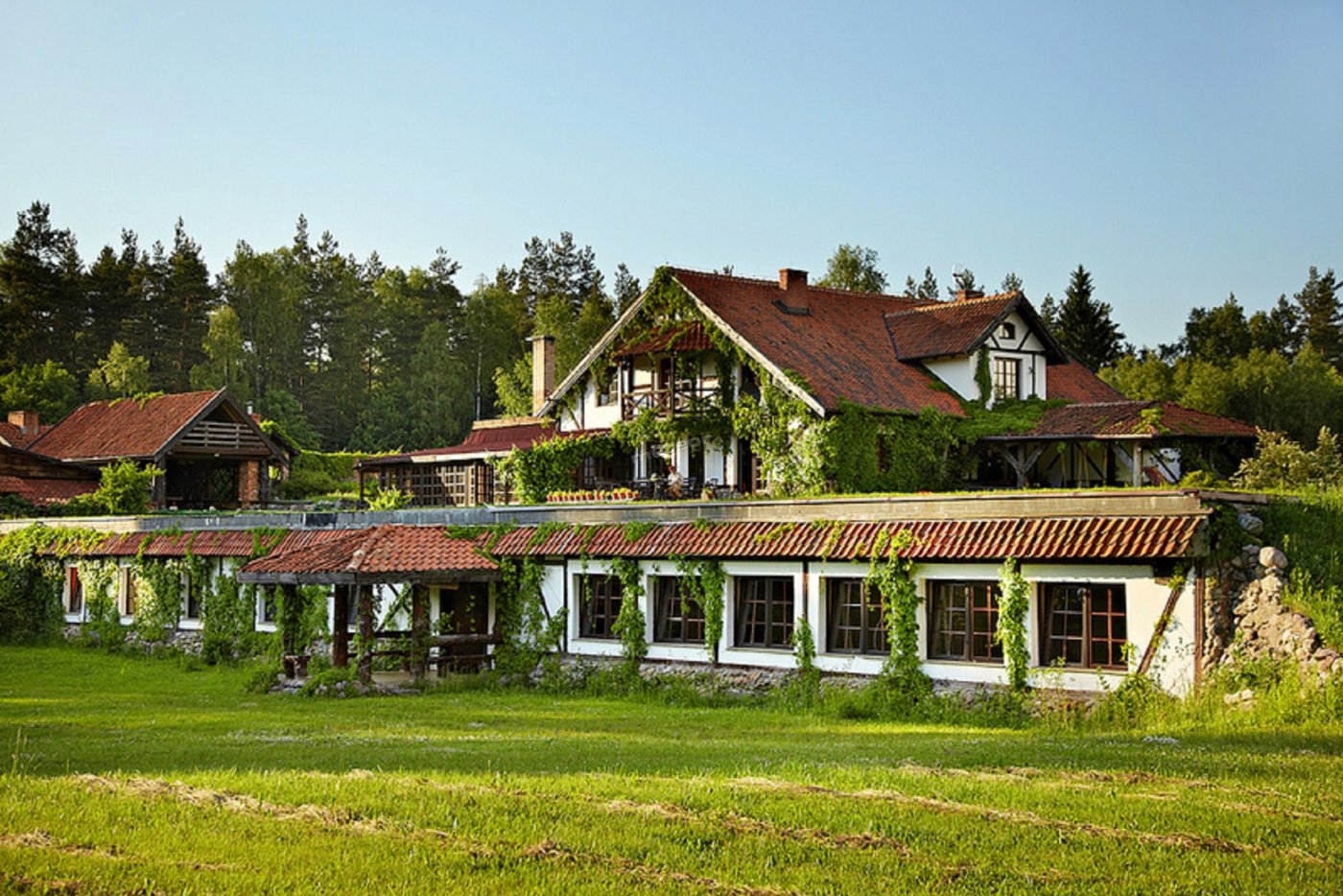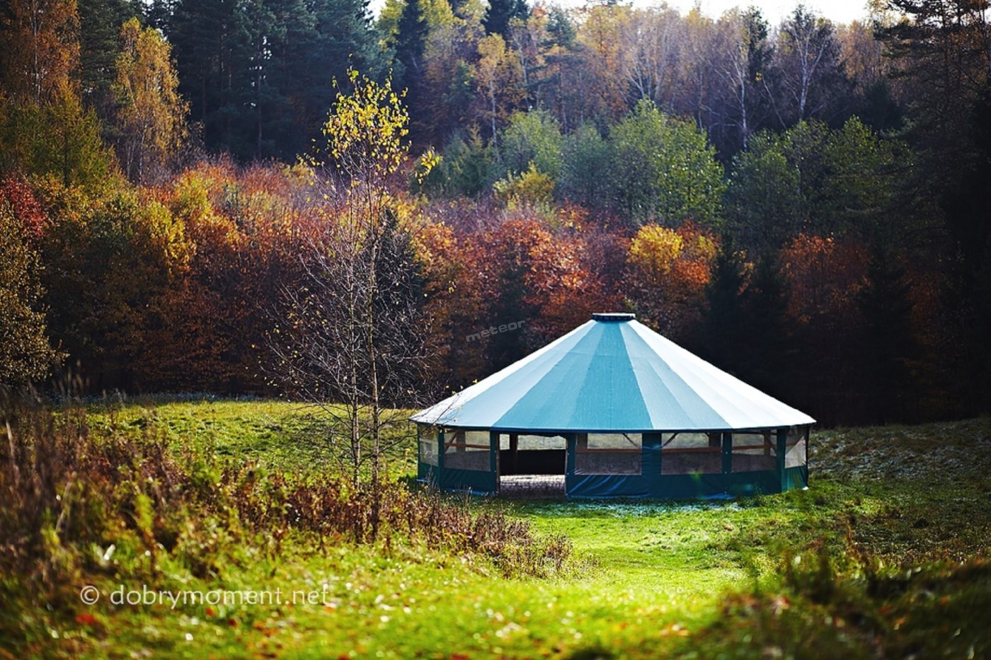 Зал окружен лесом, в 150 м от главного дома.