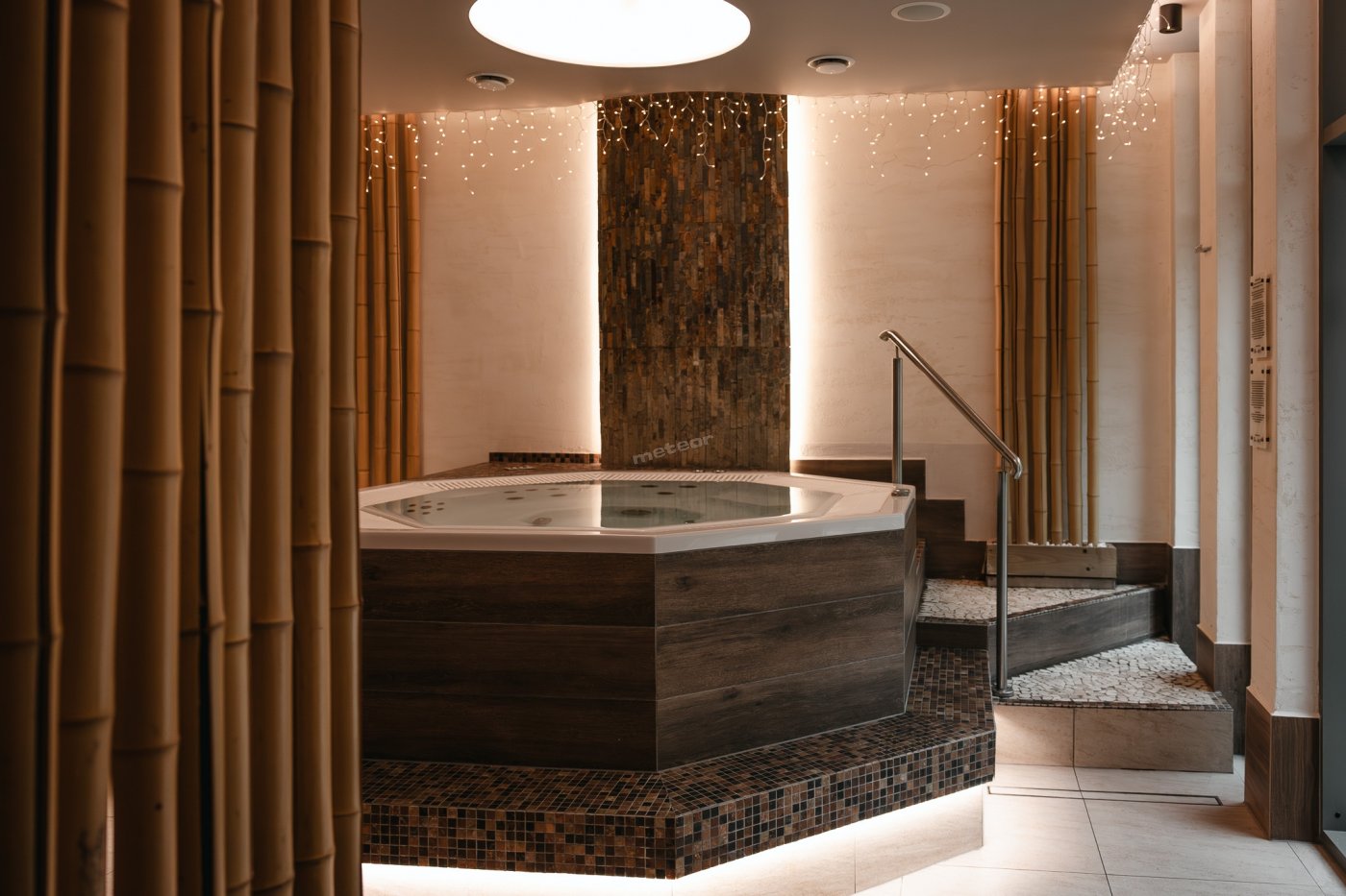 Зона СПА, включенная в стоимость номера, включает в себя: финскую сауну, травяную сауну, паровую баню, охлаждающий комплекс (деревянная купель, подвесной душ-ведро и ледяной водопад), а также крытое и открытое джакузи, работающие круглый год. Зона релаксации включает в себя соляную стену и мини-соляную градирню. В зоне СПА также имеется реабилитационный бассейн с гидромассажем, водопадом, системой противотока и воздушным гейзером.