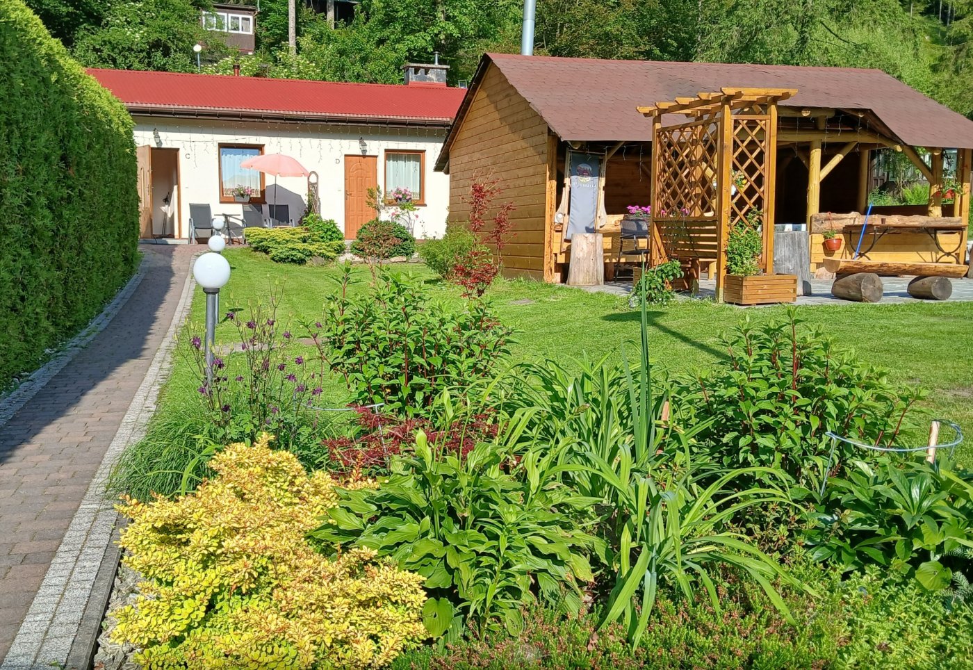 В этом саду также есть крытый барбекю и место для костра.