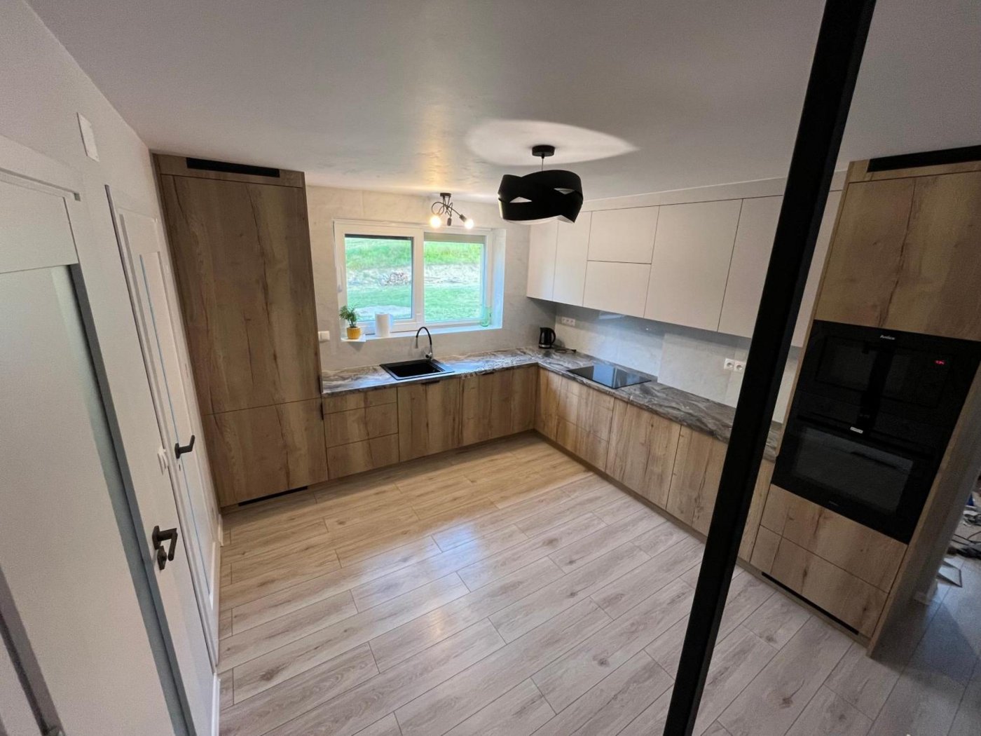 Na wyposażeniu kuchni: lodówka, zmywarka, płyta grzewcza, piekarnik, kuchenka mikrofalowa, czajnik, naczynia.