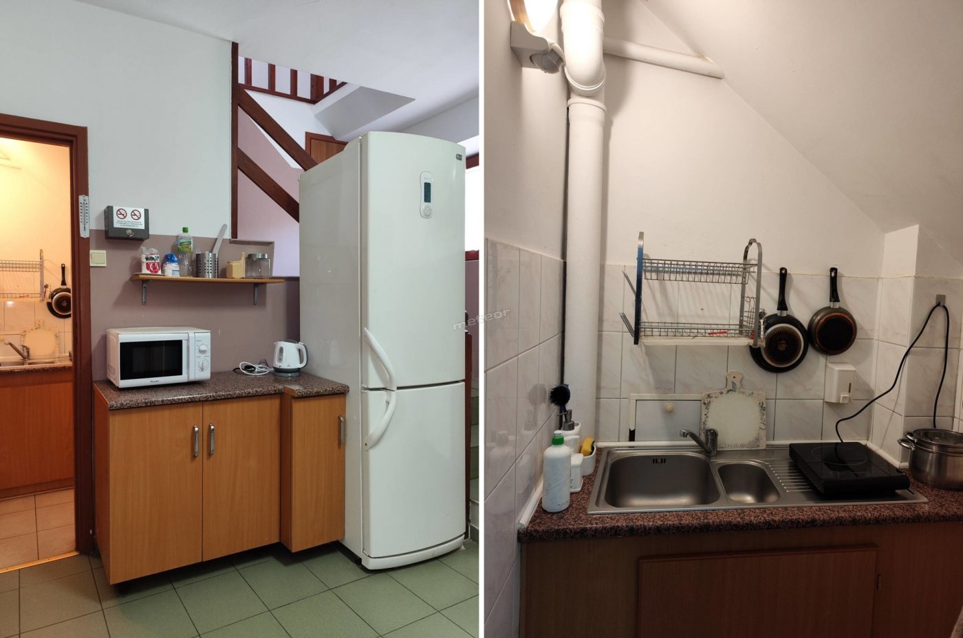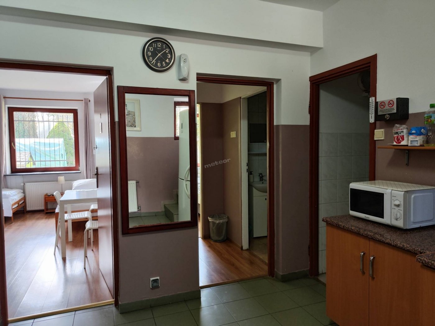 Do wspólnej dyspozycji jest aneks kuchenny: lodówka, kuchenka mikrofalowa, płyta grzewcza, czajnik, naczynia, sztućce.