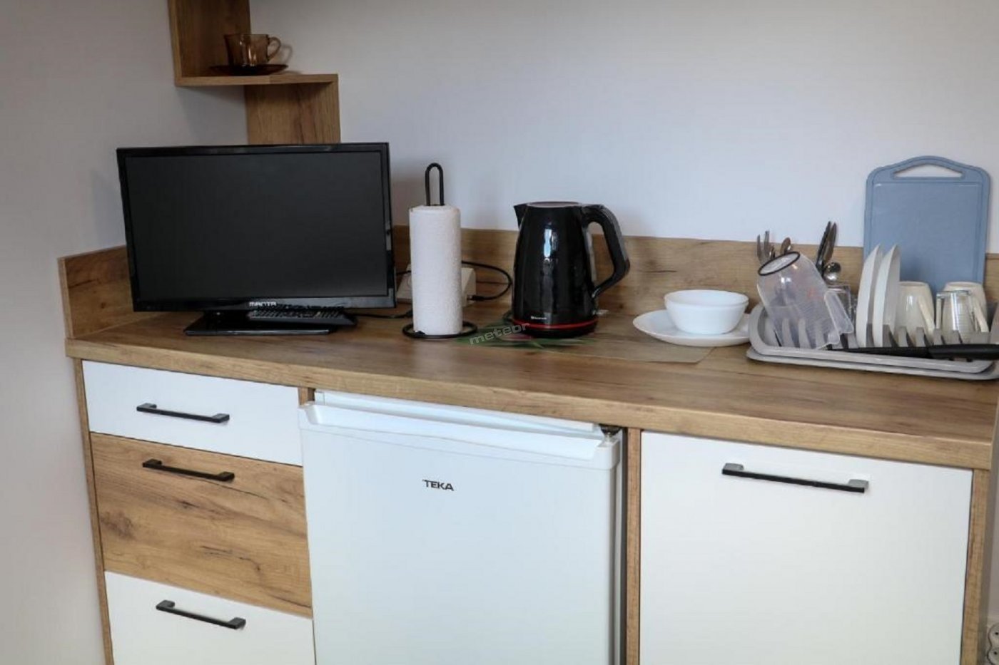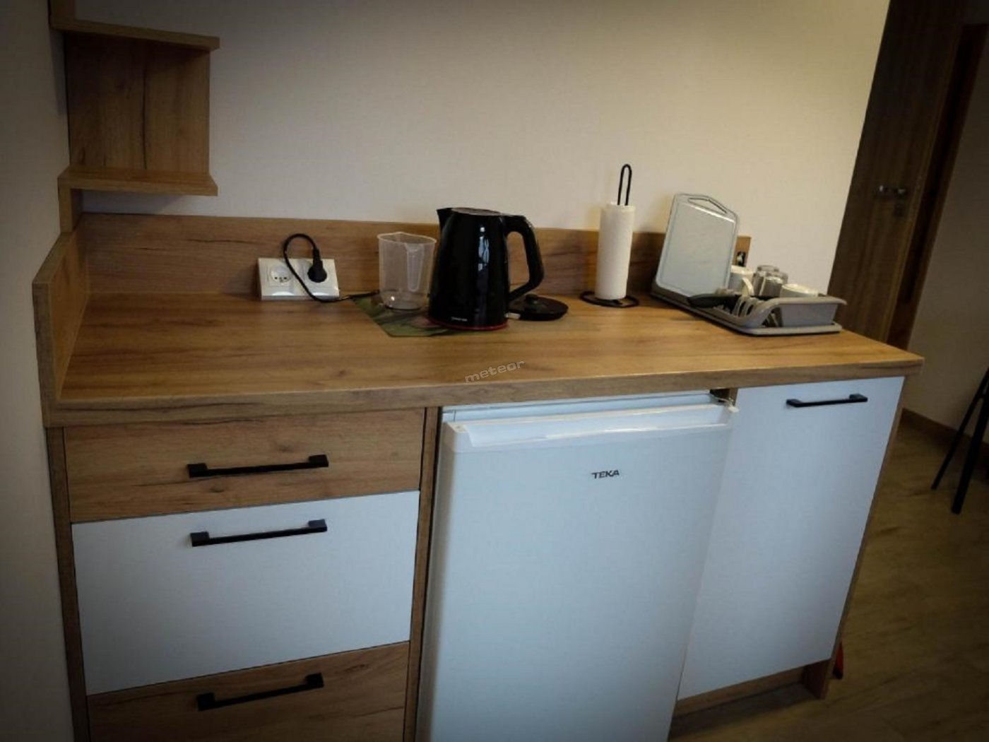 Na korytarzu znajduje się kuchenka mikrofalowa oraz ekspres do kawy z zapasem kawy i herbaty.