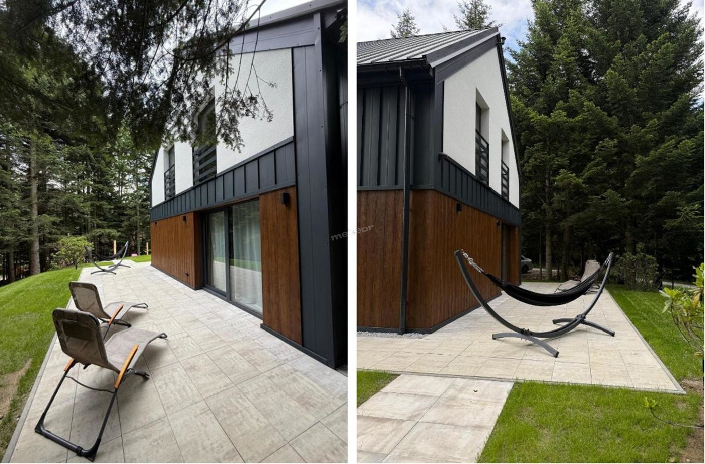 Dom ma 5 sypialni z widokiem na góry, salon z TV, wyposażoną kuchnię, 3 łazienki, garderobę oraz piękny taras z widokiem na góry, łąki i las.