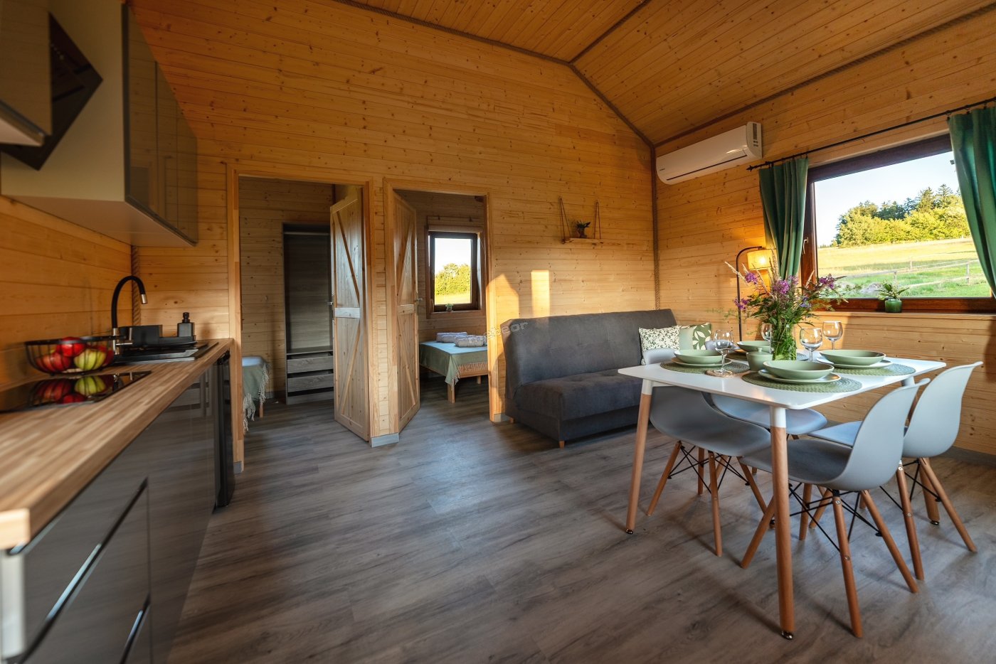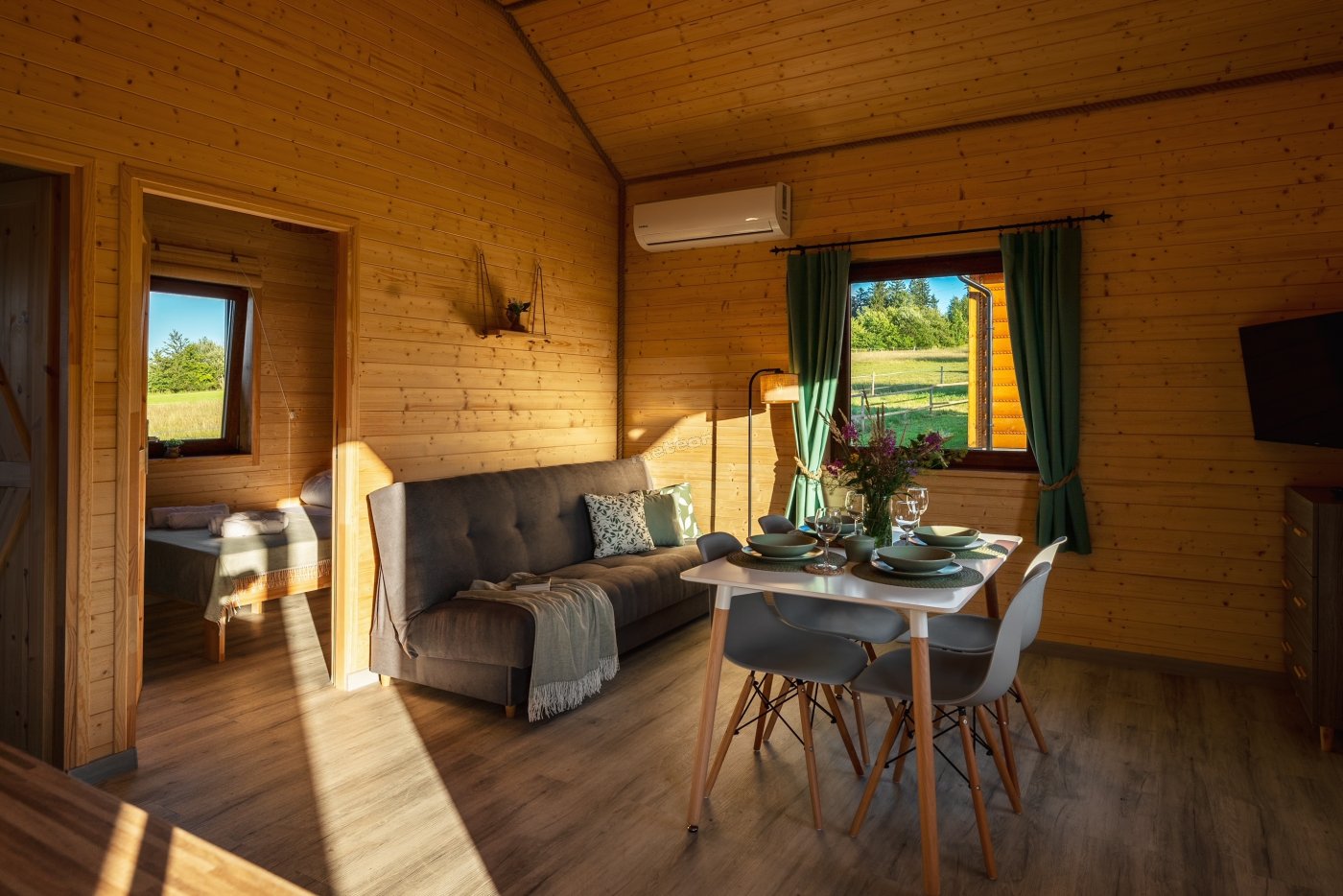 Nasze domki zaprojektowane zostały z myślą o komforcie, ale też o tym, by pozwalały zanurzyć się w atmosferze miejsca.