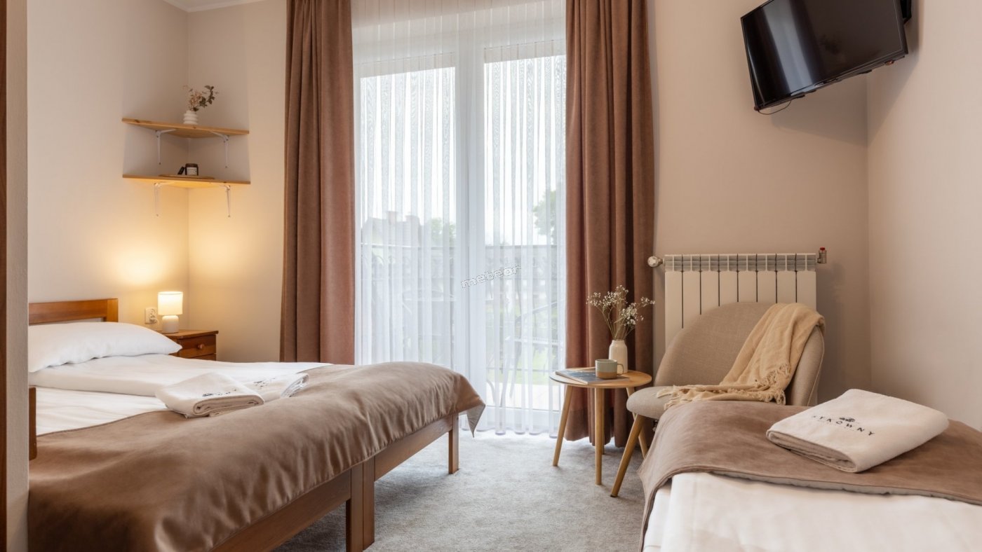 Proponujemy Państwu przestronne pokoje 2, 3, 4- osobowe. Wszystkie z łazienkami, TV, Wi-Fi, suszarkami, ręcznikami, pościelą.