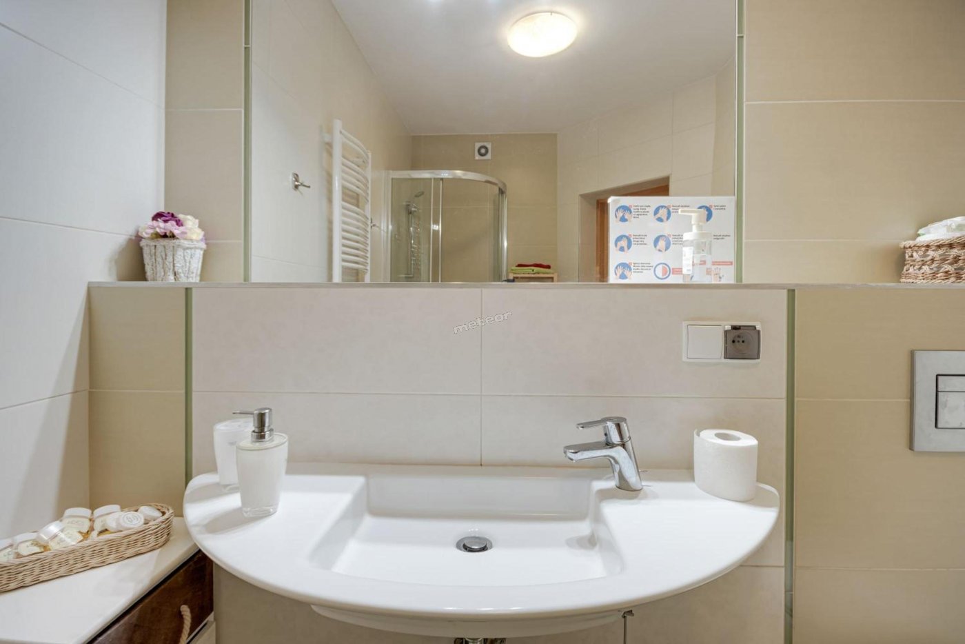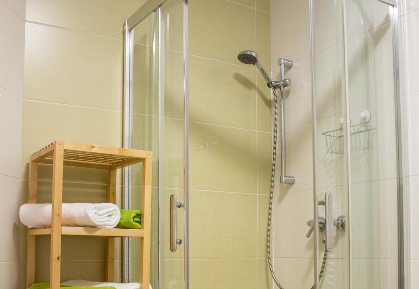 Łazienka: prysznic, suszarka, lokówko-suszarka, ręczniki, mydło w płynie.