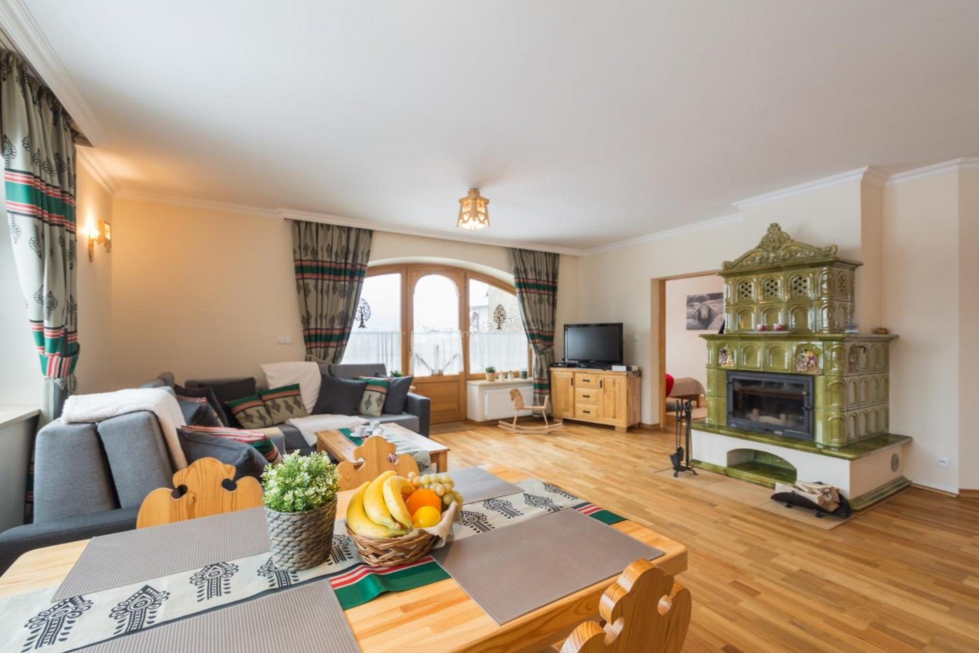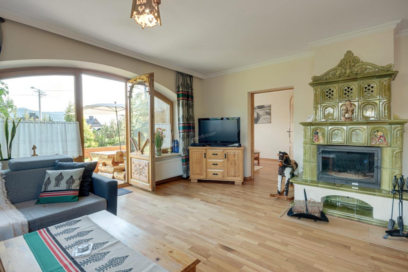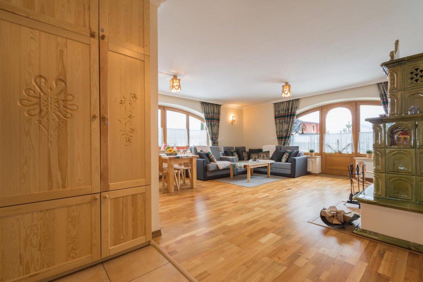 Apartament mieści się w nowoczesnym budynku, wybudowanym w stylu góralskim.