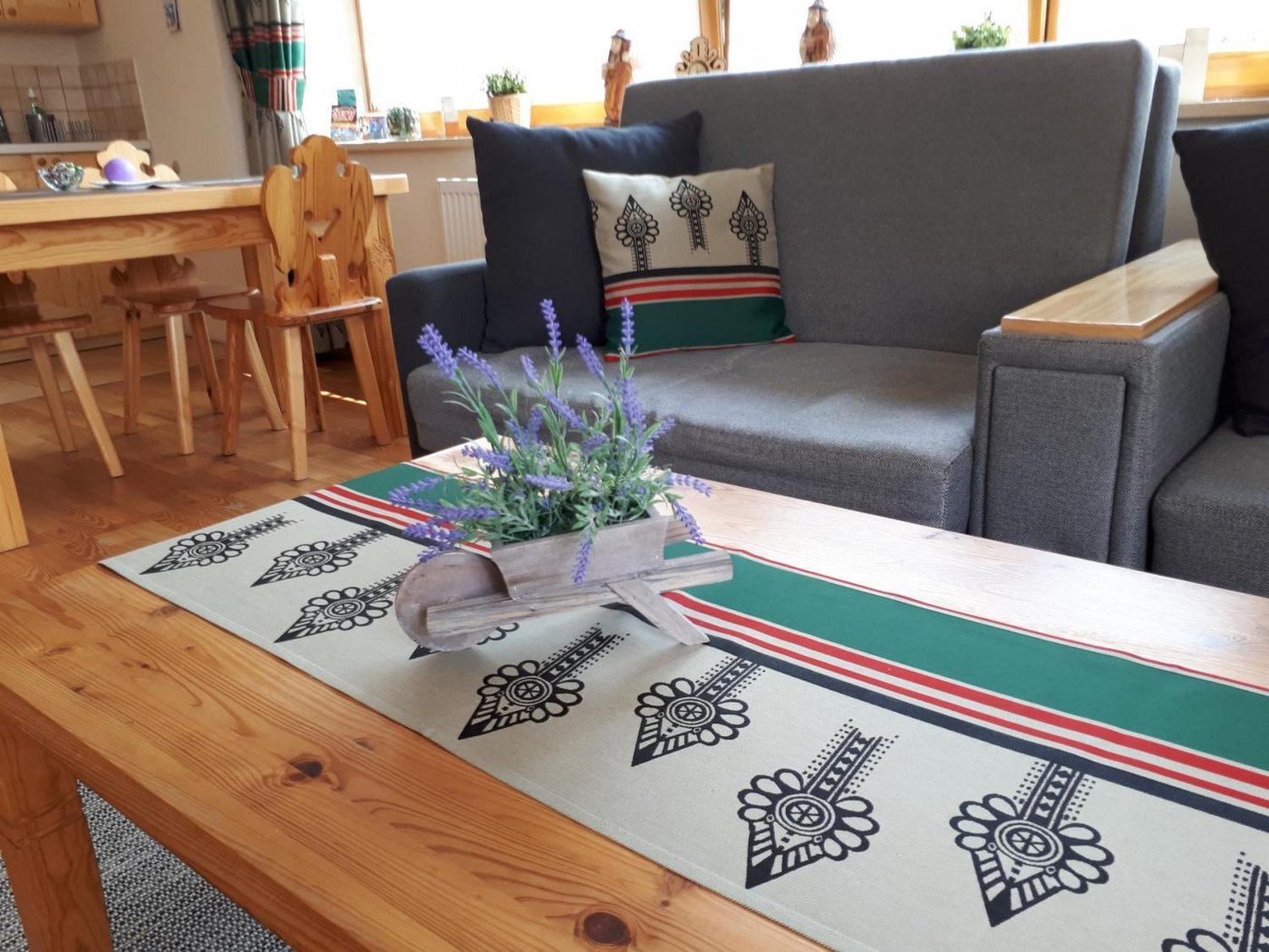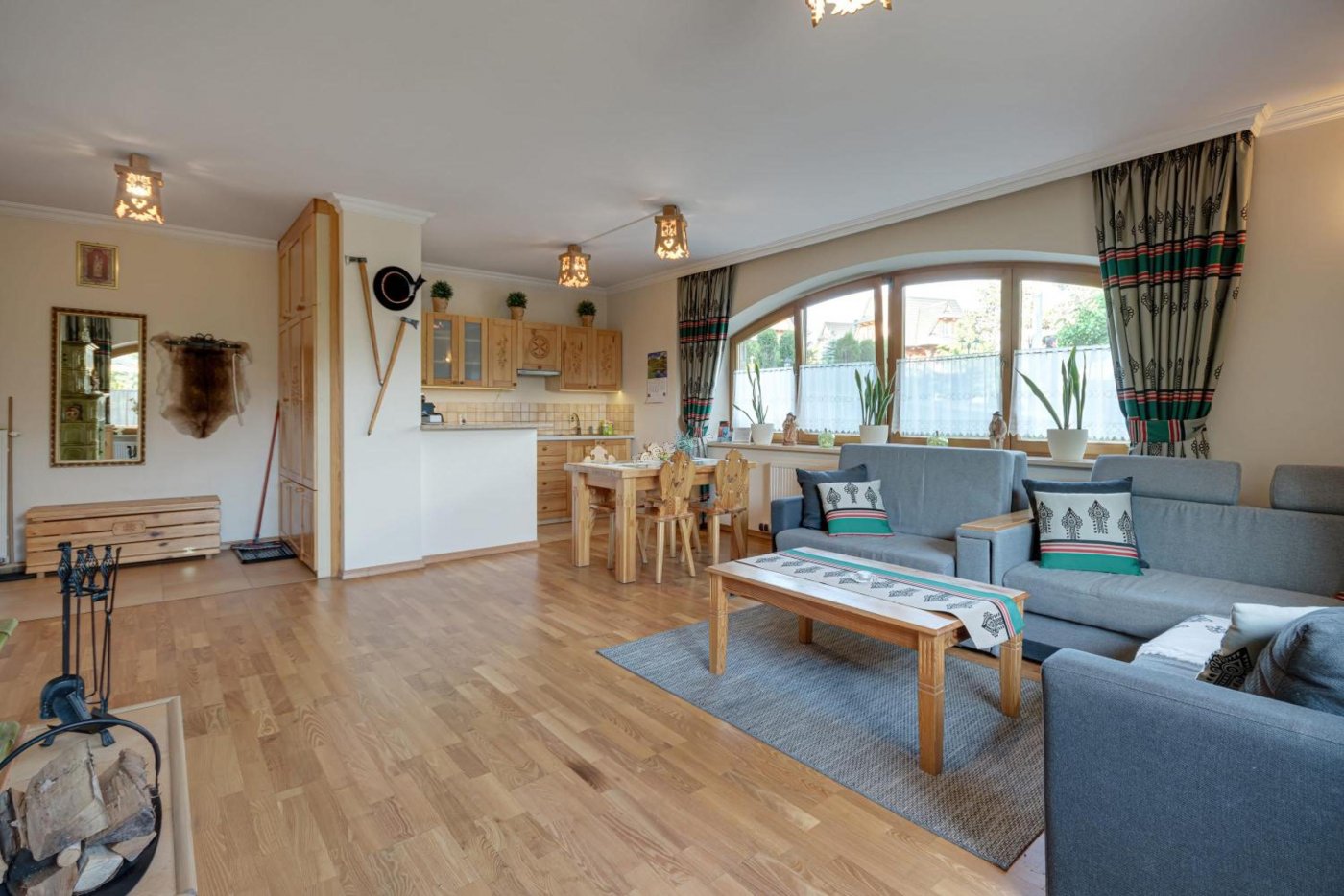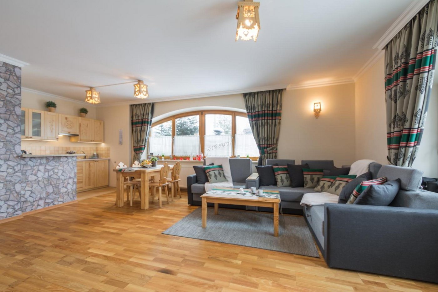 Apartament mieści się w nowoczesnym budynku, wybudowanym w stylu góralskim.