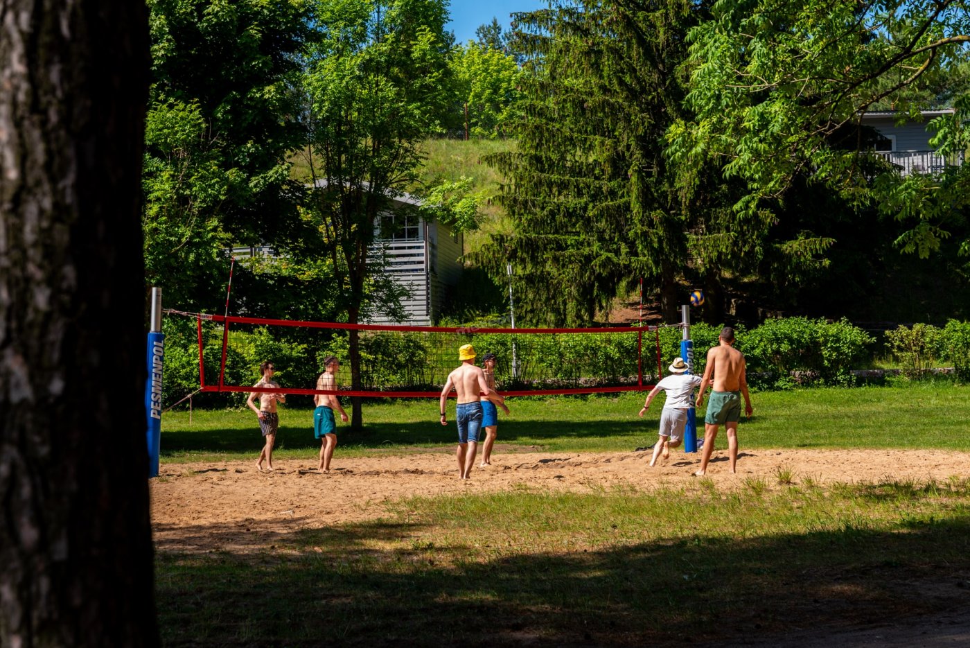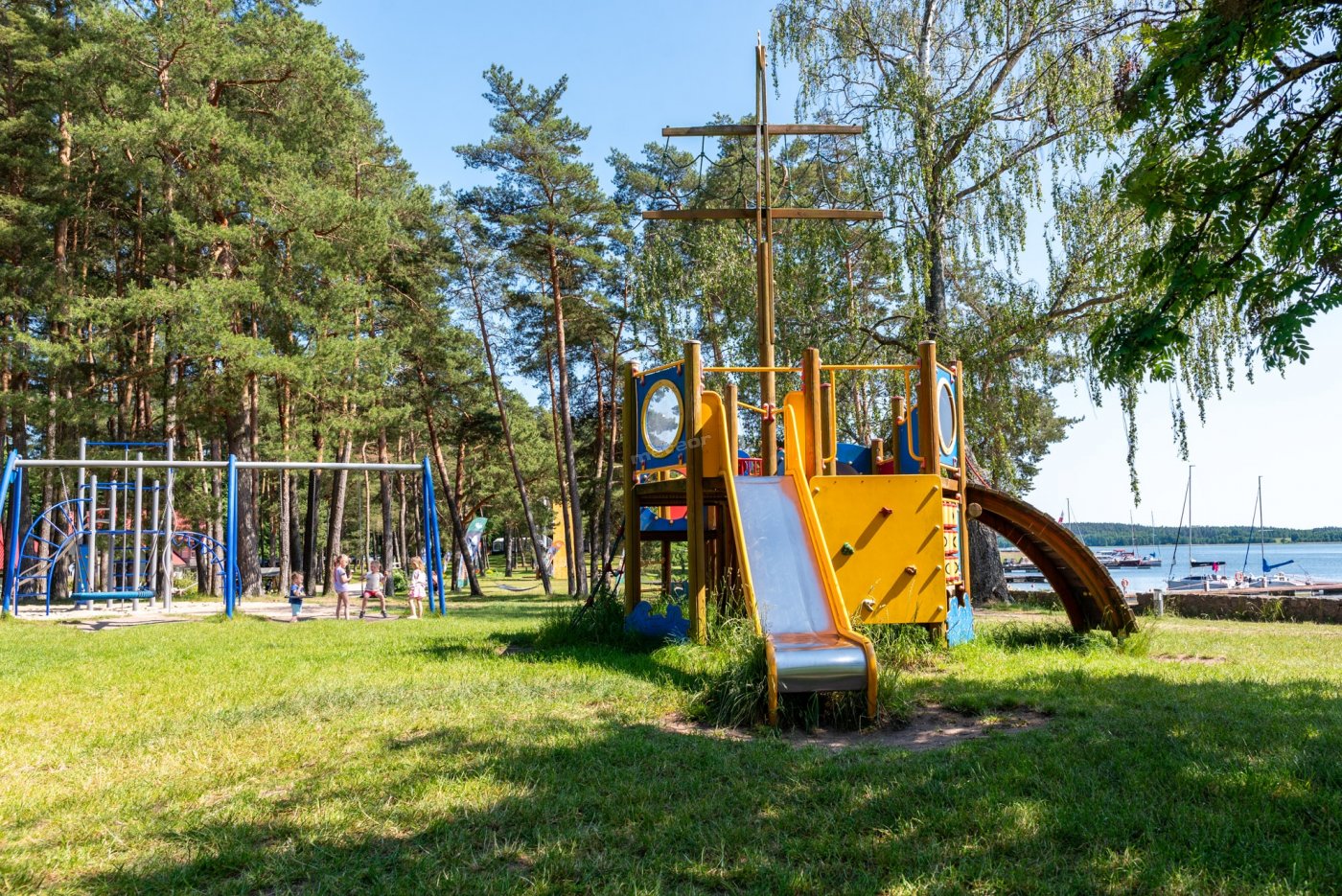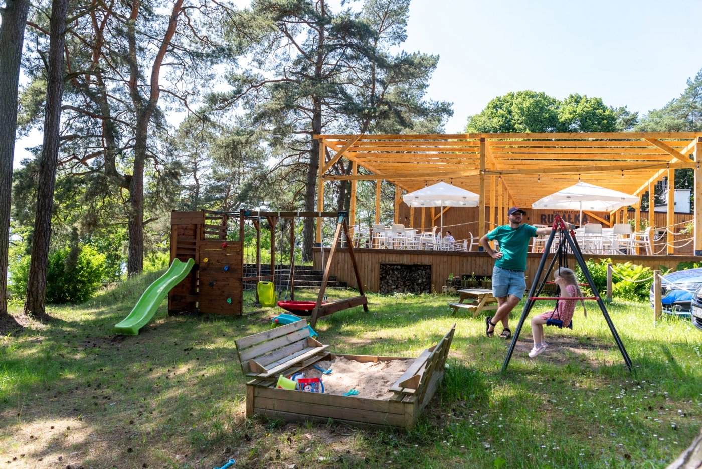 Na plaży Piękny Brzeg wypożyczalnia sprzętu wodnego - SUP, rowery wodne. Duzy plac zabaw dla dzieci, sala zabaw pod dachem, plac zabaw na wodzie. Wieża widokowa, ścianka wspinaczkowa, boisko do siatkówki, kort tenisowy.