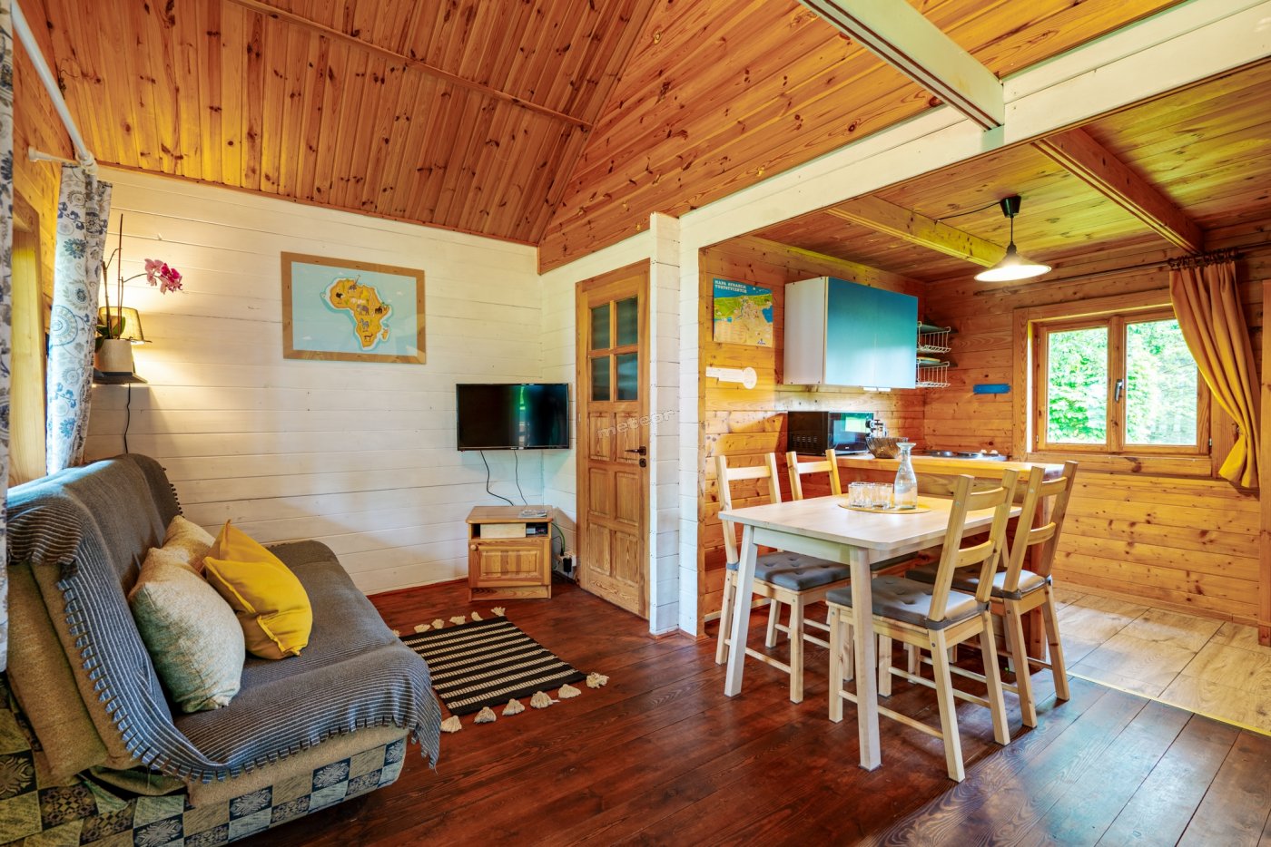 Na domek składa się 2 sypialnie, pokój dzienny, w pełni wyposażona kuchnia, łazienka.