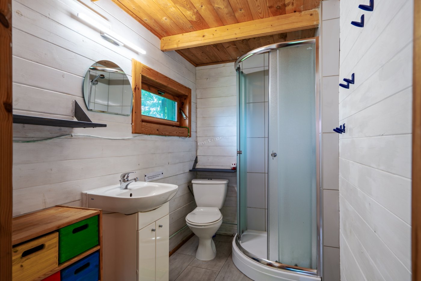 Domek piętrowy posiada dodatkowo zadaszony taras. Domek parterowy nie ma tarasu, ale do dyspozycji gości jest duża altana.