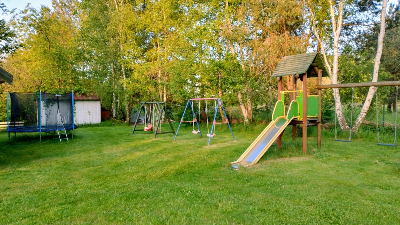 Dla dzieci plac zabaw, zjeżdżalnia, trampolina, piaskownica, huśtawka.