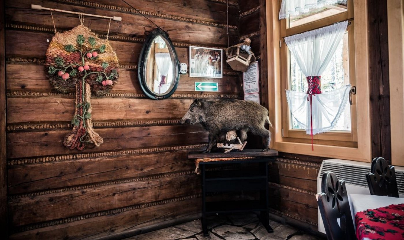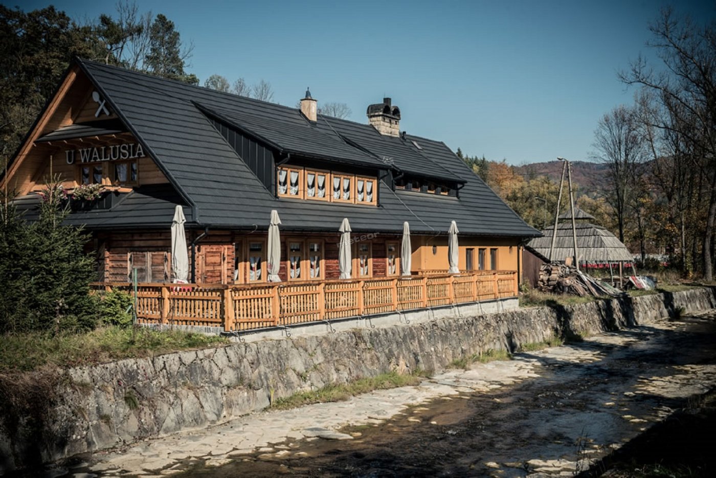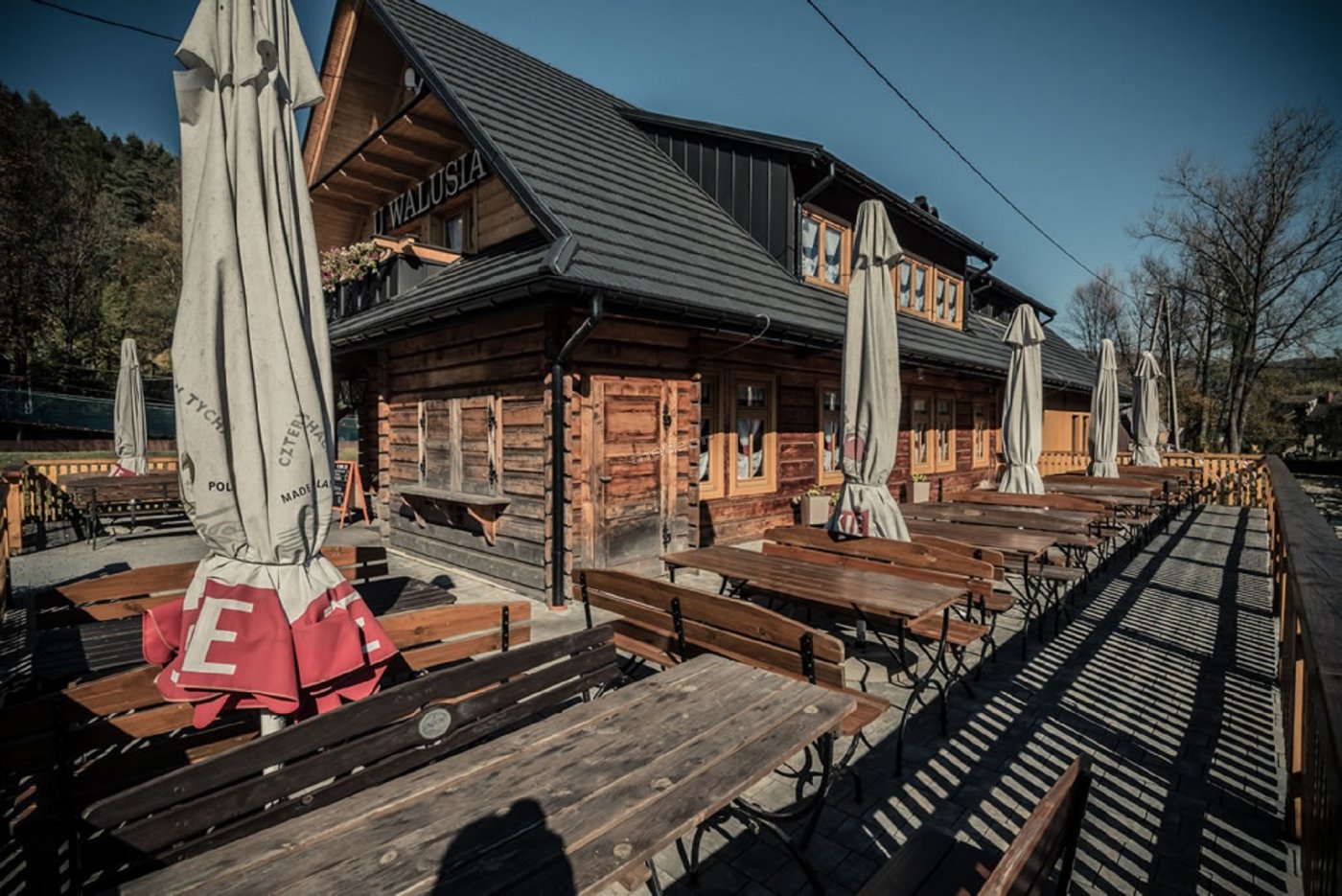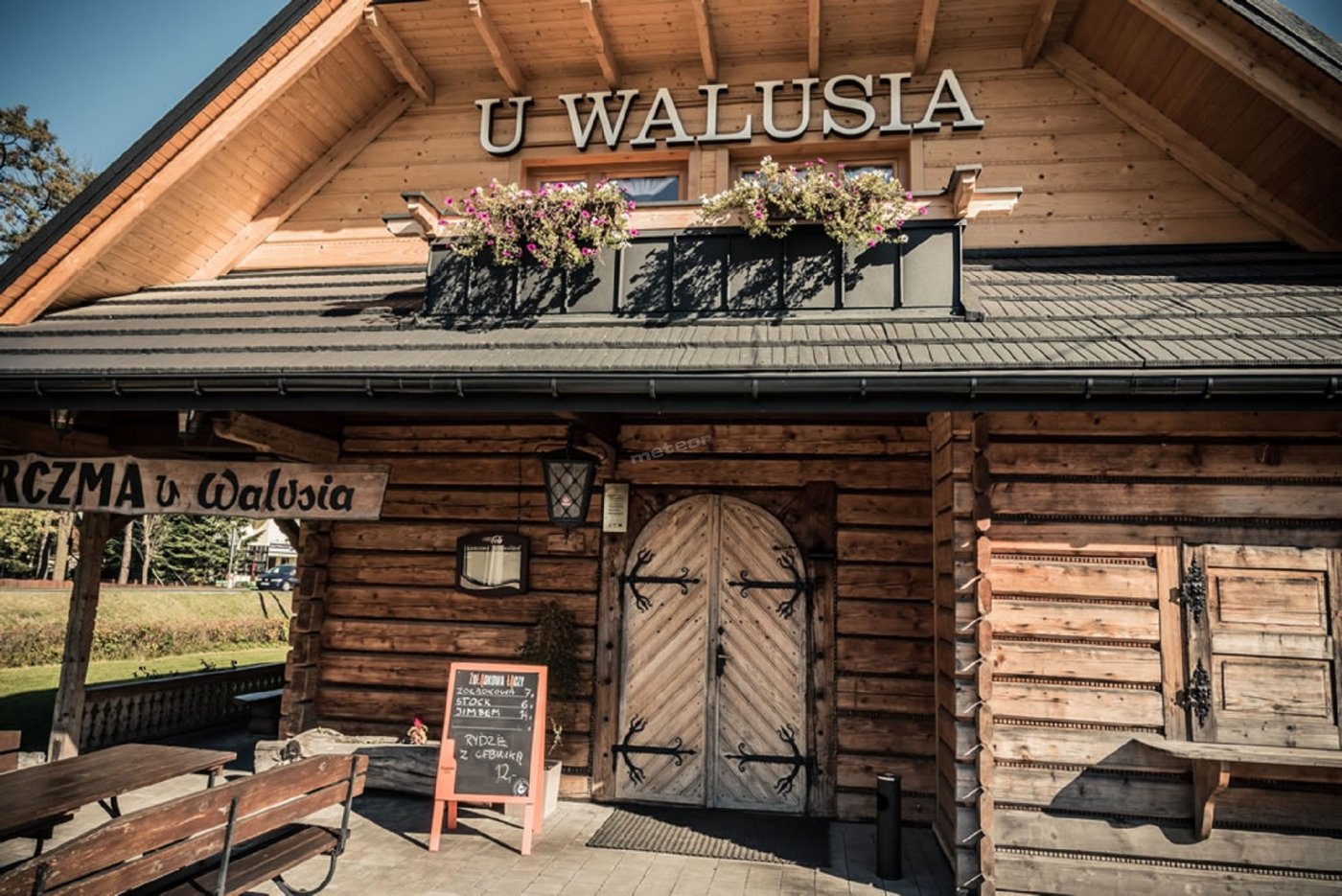 Restauracja U Walusia to drewniany budynek w stylu regionalnym.
