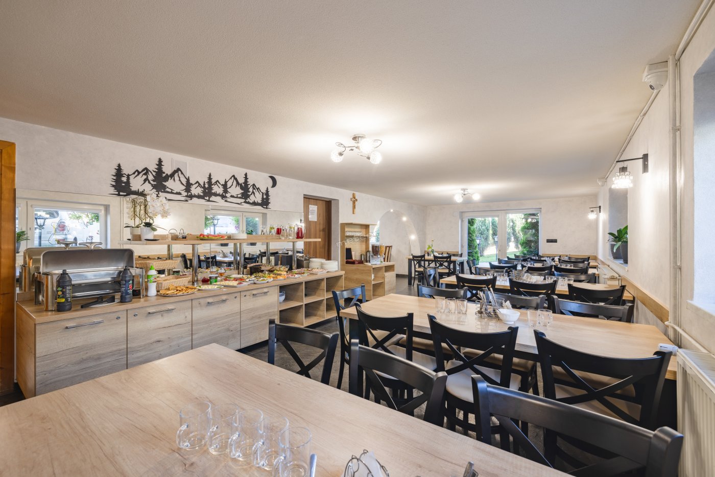 Do dyspozycji gości stołówka. Oferujemy pyszne domowe jedzenie, po wcześniejszym ustaleniu istnieje możliwość dostosowania posiłków do potrzeb żywieniowych gości (dieta wegetariańska, wegańska, bezlaktozowa czy bezglutenowa). Dla większych grup istnieje możliwość przygotowania prowiantu na wycieczki lub wyżywienia ze śniadaniem, obiadem, podwieczorkiem i kolacją.