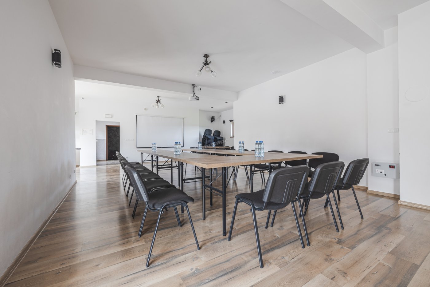 W obiekcie znajduje się sala wielofunkcyjna z wyposażeniem na konferencje: odpowiednie stoły, krzesła oraz projektor.