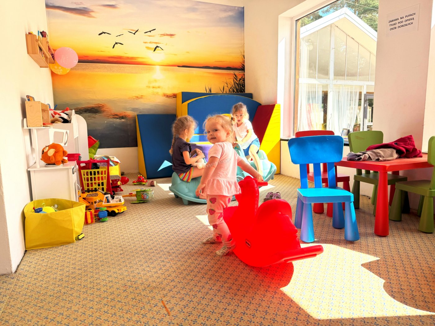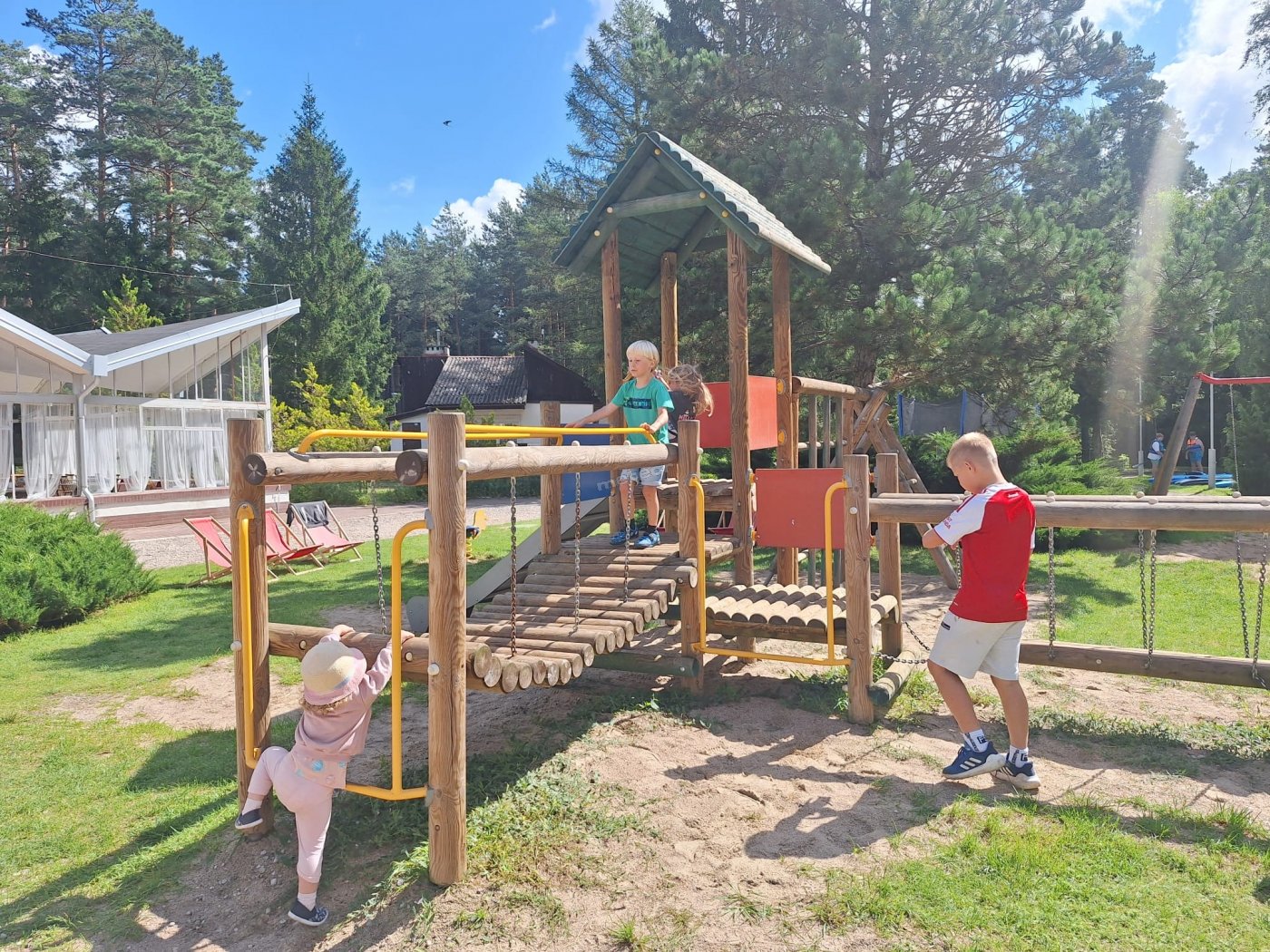 Do dyspozycji gości przystań z wypożyczalnią sprzętu wodnego. Dla aktywnych: boisko do piłki siatkowej, piłkarzyki, bilard, pin-pong. Dla dzieci plac zabaw.