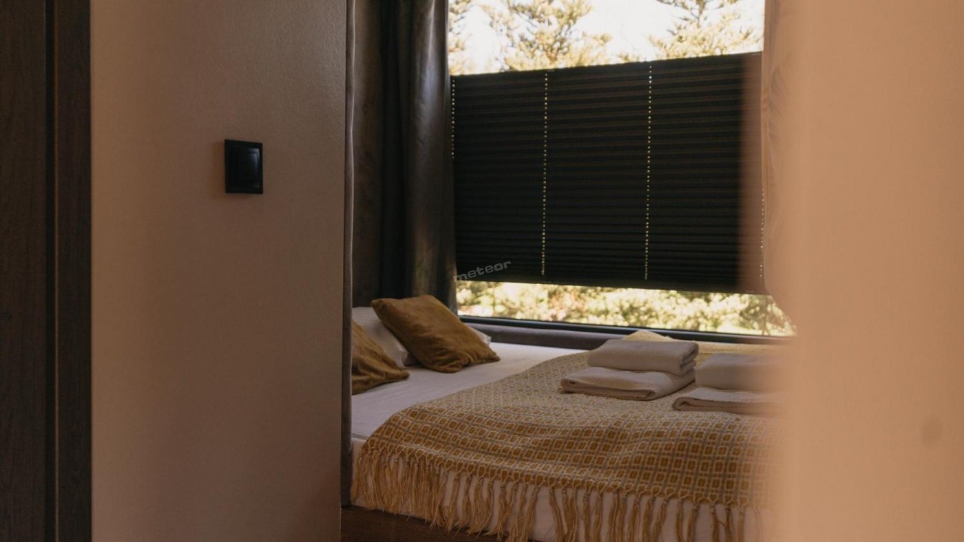 W każdym domku: duże łóżko w formie kapsuły, rozkładana 2-osobowa kanapa, łoże chowane w szafie, tworzące stolik, aneks kuchenny (lodówka, płyta kuchenna, toster, czajnik, sztućce, naczynia, garnki), łazienka (ręczniki, suszarka, mydełka), bezpłatne Wi-Fi oraz TV.