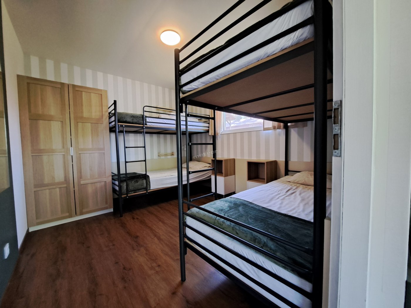Domki campingowe 6-osobowe, z pełnym węzłem sanitarnym (WC, umywalka, prysznic).