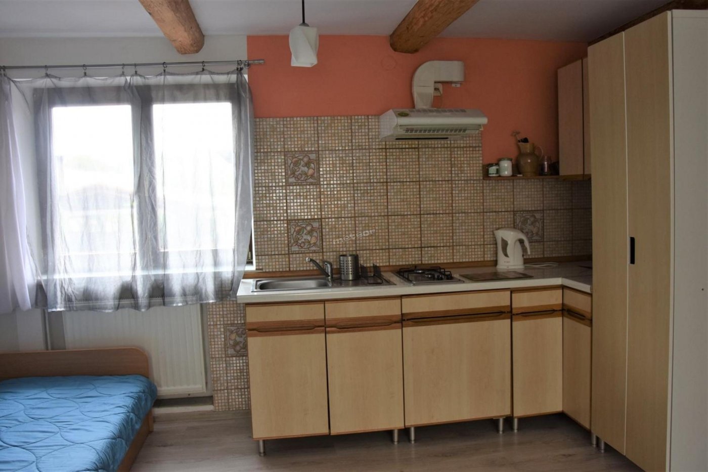 - pokój rodzinny ma kuchnię wyposażoną w kuchenkę gazową, zlewozmywak i naczynia kuchenne. W pokoju jest łóżko małżeńskie i tapczan dwuosobowy.