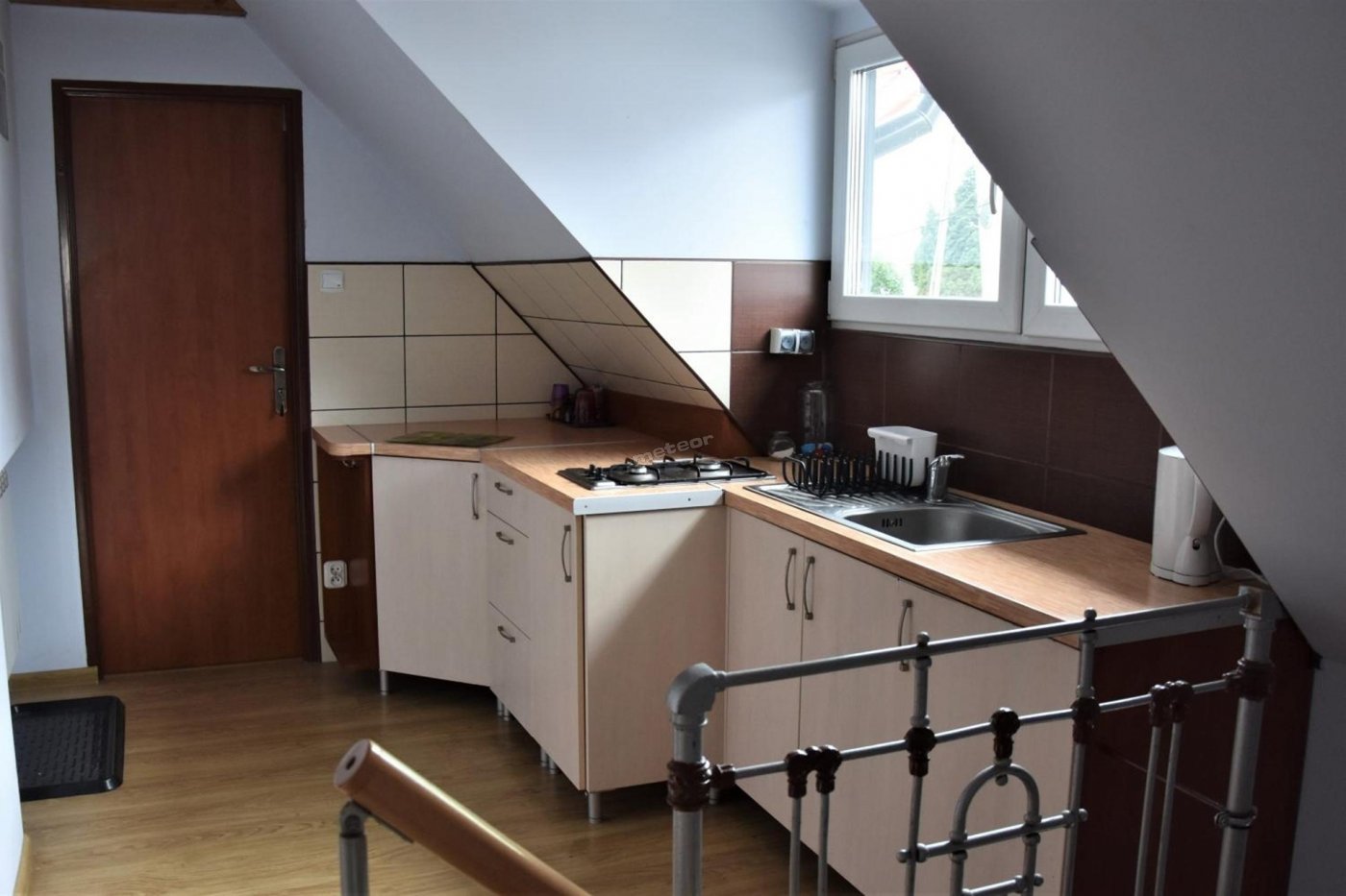 - pokój niebieski (wersalka i łóżko jednoosobowe) i pokój zielony (dwa łóżka i łoże małżeńskie) mają wspólną kuchnię z palnikami gazowymi, zlewozmywakiem i naczyniami.