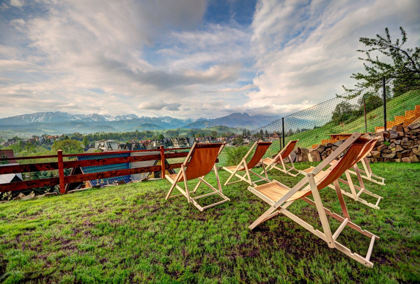- taras z przepięknym widokiem na całą panoramę Tatr (stół, krzesła);